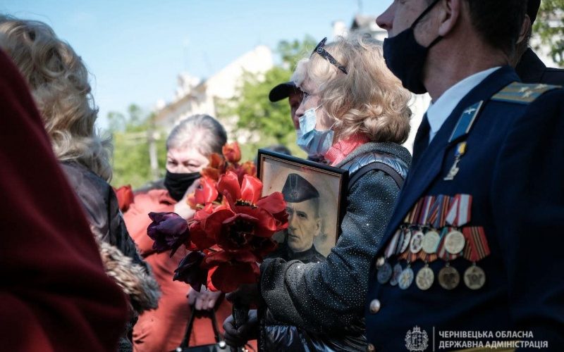 Біля пам’ятника воїнам-визволителям зібралось сотні чернівчан з квітами та портретами своїх родичів, які загинули на війні, пише molbuk.ua