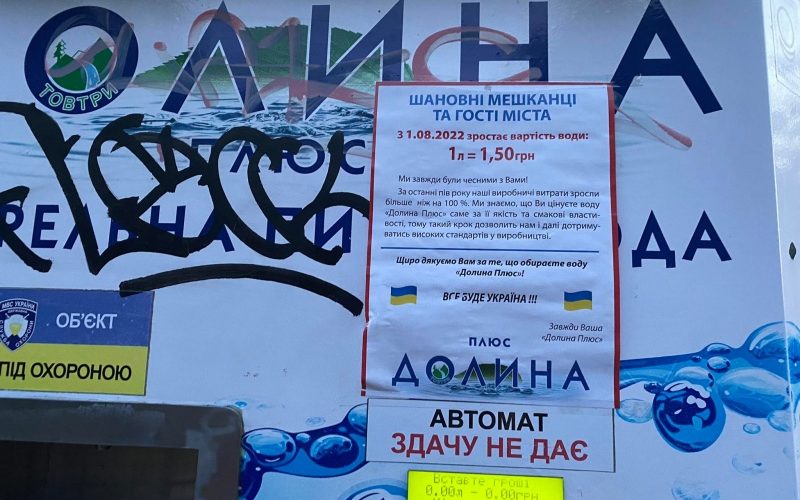 У Чернівцях зросла вартість питної води “Долина плюс” у автоматах. З 1 серпня вартість 1 літра становить 1,50 грн замість 1 грн.