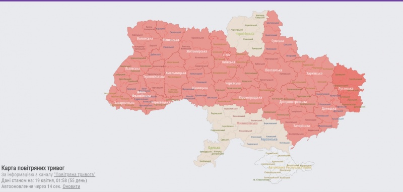 Про це свідчать дані карти повітряних тривог, пише molbuk.ua